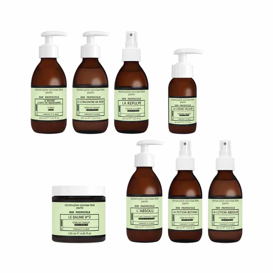 La peau étant le miroir de nos émotions, Christophe-Nicolas Biot a conçu, en collaboration avec Brigitte Dubray, Visage & Corps “Mon Protocole” avec des formules bienfaitrices pour le corps et l’esprit. Destinés à soigner la peau dans toute sa complexité, les possibilités d’utilisation des produits sont infinies !