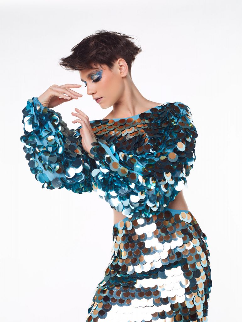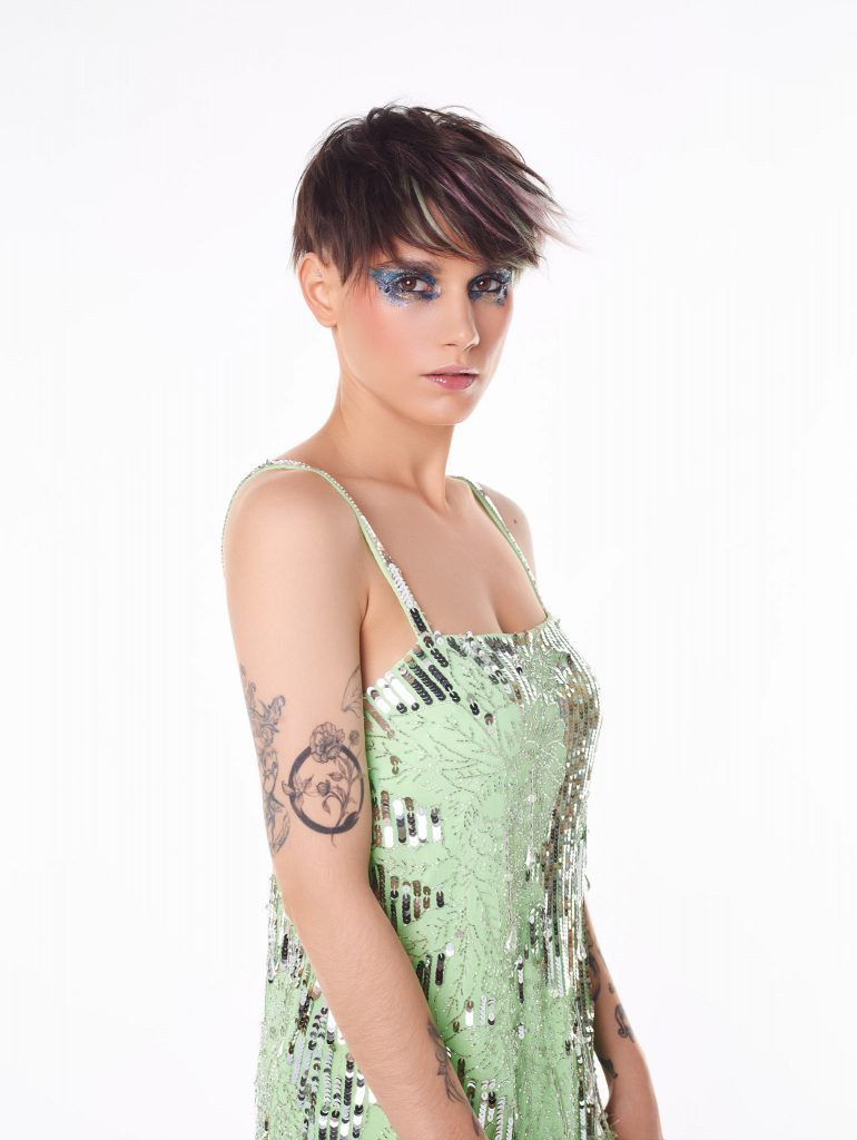 La collection Shiny nous plonge dans une ambiance jeune et disco. Au programme : des effets de balayage originaux qui surfent sur la tendance du rose. On reste sur des tons pastel pour passer un été frais et optimiste. Pour parfaire la mise en beauté, les mannequins ont revêtu leurs plus beaux habits de lumière. Paillettes, franges et effet lamé pour un résultat festifs. On imagine totalement la boule à facettes. Le maquillage théâtralise le tout avec des effets graphiques qui viennent allonger le regard.