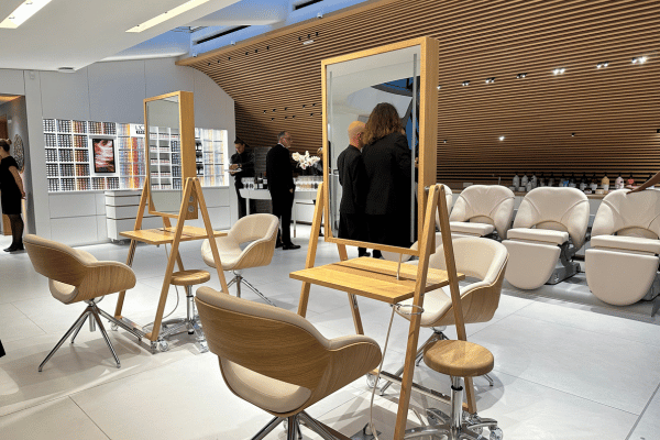 Les produits emblématiques qui soutiennent l’esprit pionnier de cette Maison incluent Yume. La station de lavage la plus luxueuse et innovante au monde est présente au Visionnaire – Espace François Dalle. Cependant, il s’agit d’une version exclusive équipée d’un repose-jambes pliable, d’une structure simplifiée et d’une couleur d’ameublement “ad hoc”. Des fauteuils de coiffure, des miroirs et des chariots emblématiques de Takara Belmont sont également présents.