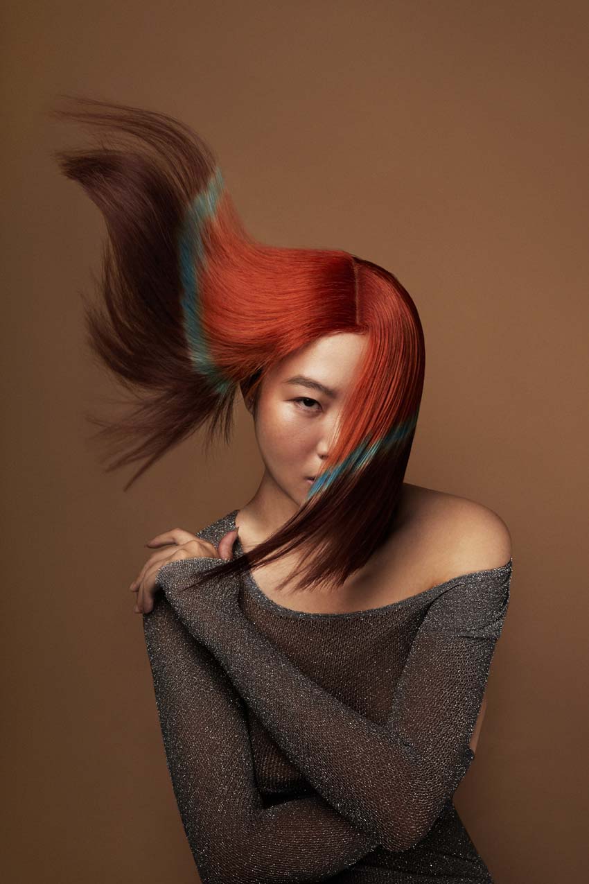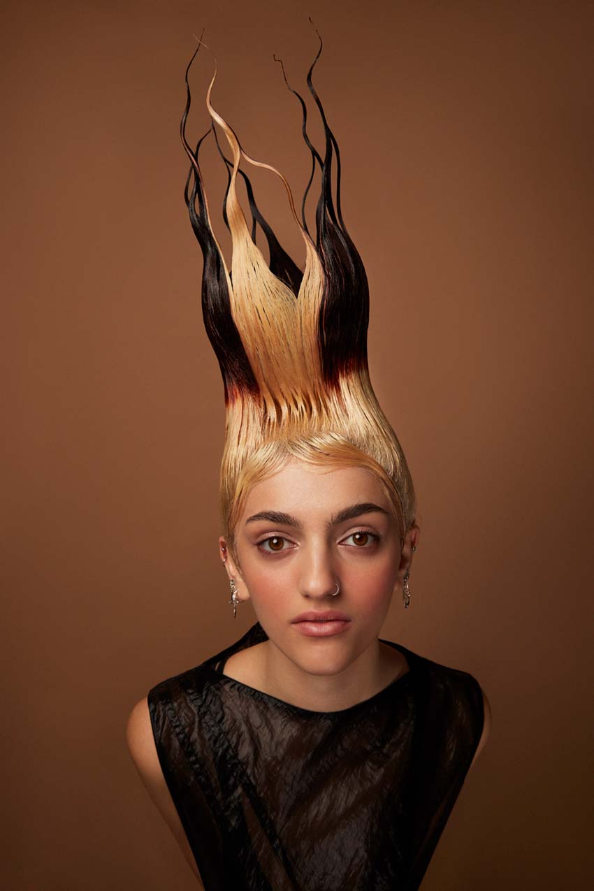 Emmanuel embrasse ces principes à la fois dans ses performances scéniques et dans la création de ses perruques. Dans cette série, il utilise des techniques de coloration détaillées et des formes organiques pour évoquer des réponses émotionnelles profondes, faisant écho à la croyance de Rothko dans le pouvoir transformateur de l’art. Vertical Horizon met en valeur l’admiration artistique qu’Emmanuel Esteban porte au peintre. À travers l’utilisation habile de techniques de coloration linéaires sur un fond monochrome, Esteban entrelace des formes organiques et structurelles. Cette collection avant-gardiste vise à capturer les expressions humaines, forgeant ainsi une connexion profonde entre les coiffures et leurs observateurs.