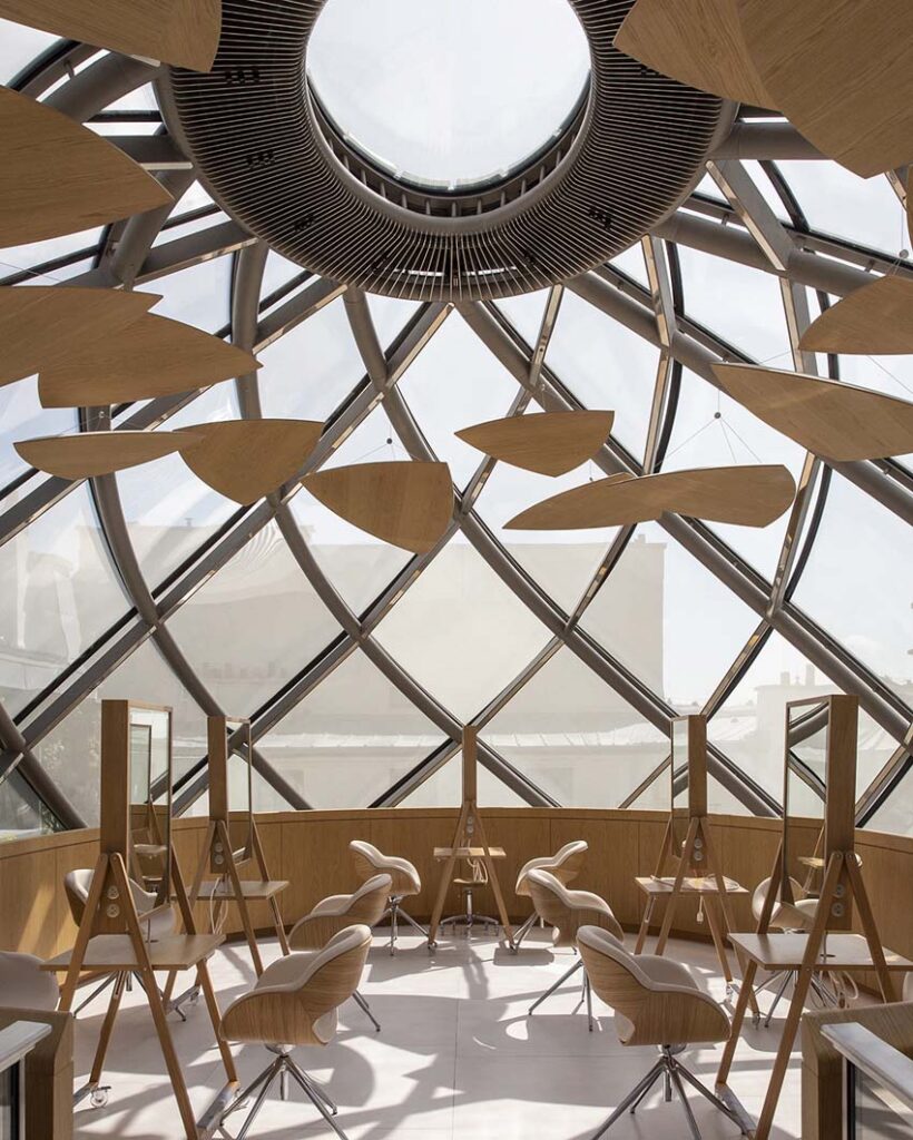 Le Visionnaire occupe une surface de 4 000 mètres carrés dédiée à la recherche sur l’avenir de la beauté. Ce laboratoire se veut l’union parfaite entre le passé et le présent. Son architecture impressionnante et futuriste met l’accent sur l’innovation et les progrès dans le domaine de la beauté. Doté d’une technologie de pointe, il comprend un mur équipé d’un ruban d’écrans tactiles intégrant un puissant système d’intelligence artificielle.