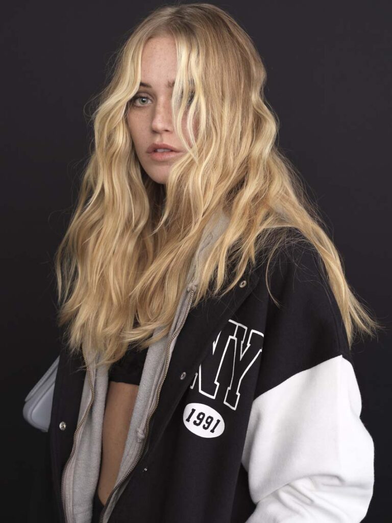 Une muse un tantinet people, de l’or entre les mains et le résultat est là ! Un blond californien qui fait rêver : le balayage Tataki par Claude Tarantino. L’égérie de cette nouvelle collection, Andréa Cano, a collaboré avec Kendji Girac et Vianney dans le clip de la chanson « Le feu ». Claude Tarantino a sublimé sa chevelure tout en lui donnant une allure bohème affirmée.