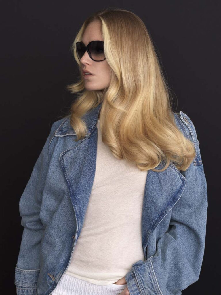 Nous avons ensuite appliqué une double patine : en racines 9-4 et en longueur 10-12 en utilisant Vibrance par Schwarzkopf professionnel. Le résultat : un balayage blond Tataki nuancé. Précision et minutie sont les mots clés de la réussite afin d’obtenir un résultat lifestyle.