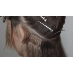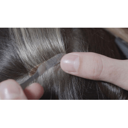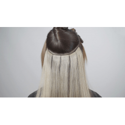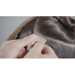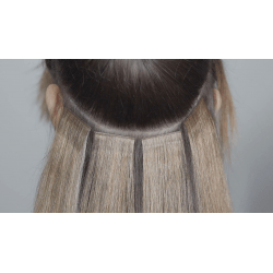 Une des caractéristiques les plus importantes de la technologie INVISIBLE Tape-in de SEISETA est la couverture de l’adhésif avec une sorte de « tente » de cheveux. Contrairement à d’autres systèmes dits « invisibles » sur le marché, où les cheveux sont regroupés en micro mèches à partir de points individuels, dans la technologie SEISETA B-cover, les cheveux sont répartis uniformément sur la longueur de l’adhésif, le recouvrant jusqu’à 90 %.