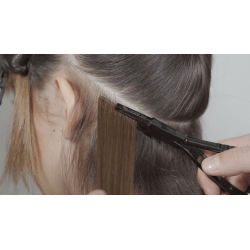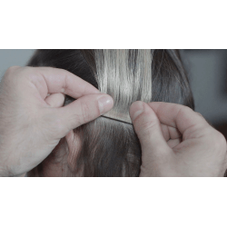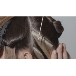 Cette particularité permet d’appliquer les extensions sur la partie supérieure de la tête pour obtenir un volume complet et un effet couleur depuis la racine comme jamais auparavant. De plus, le ruban adhésif, recouvert de cheveux, peut être coupé en mèches plus petites pour personnaliser parfaitement les extensions INVISIBLE, les adaptant aux besoins individuels de chaque client.